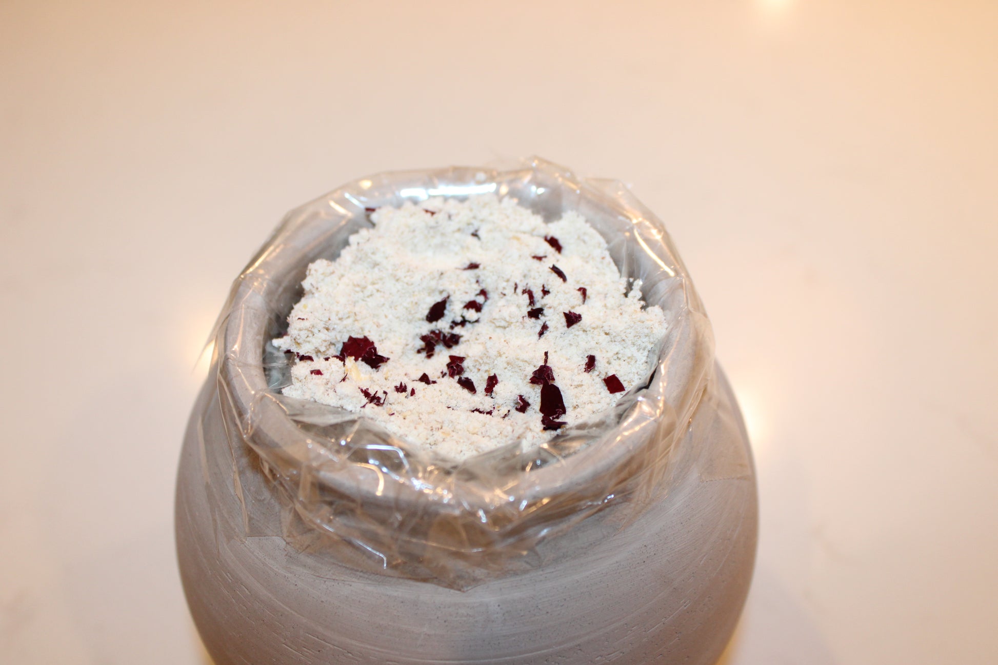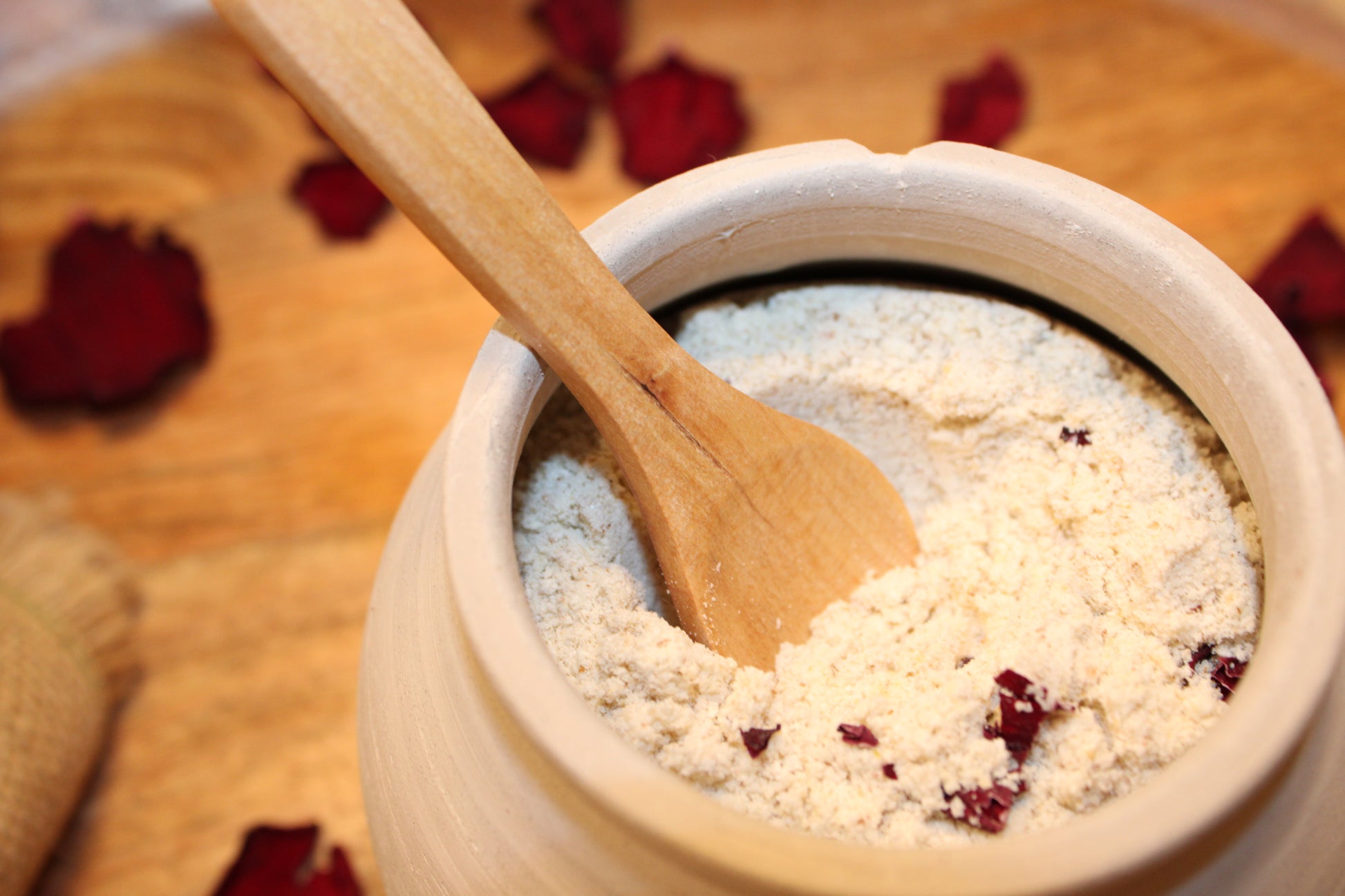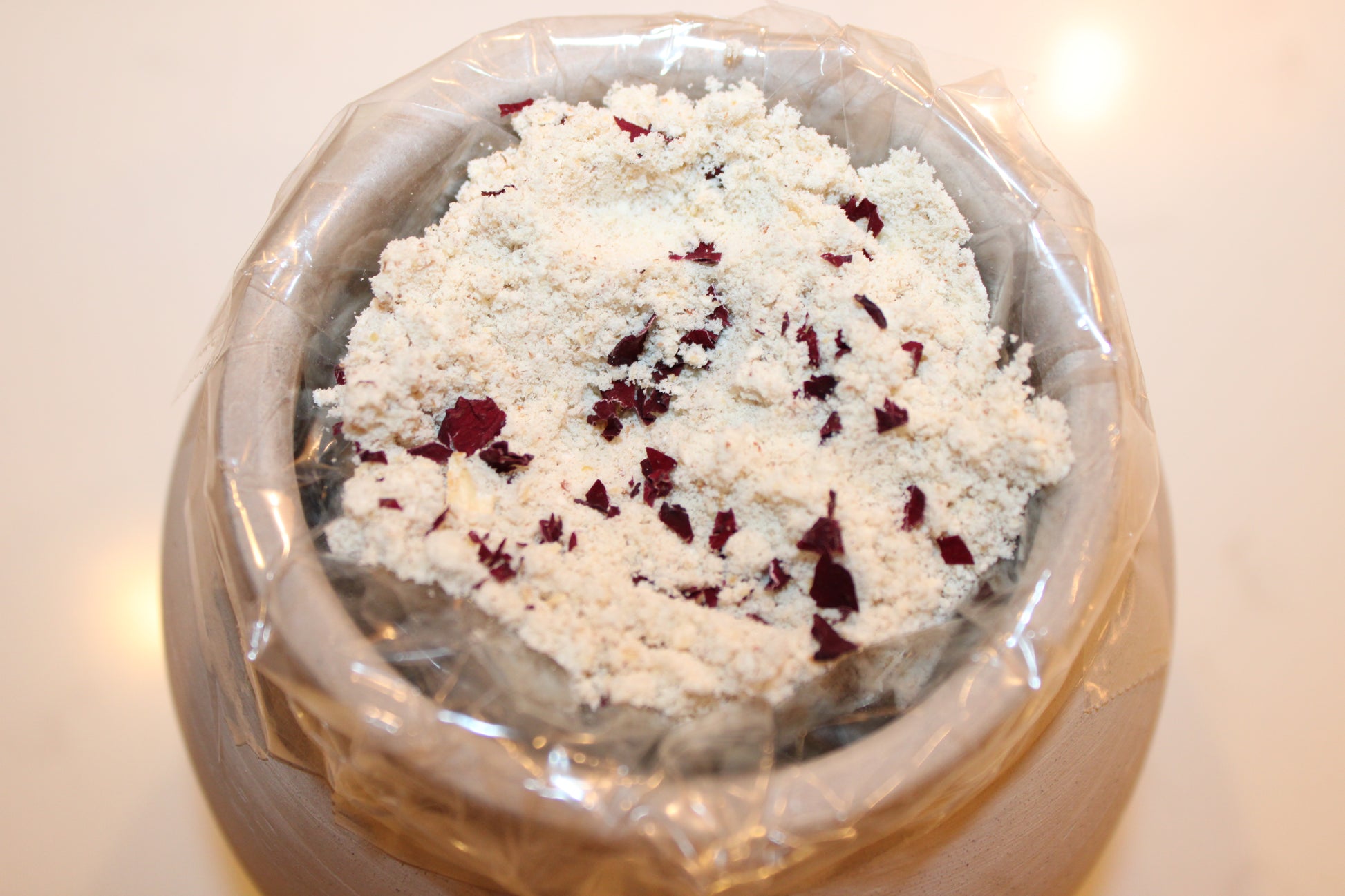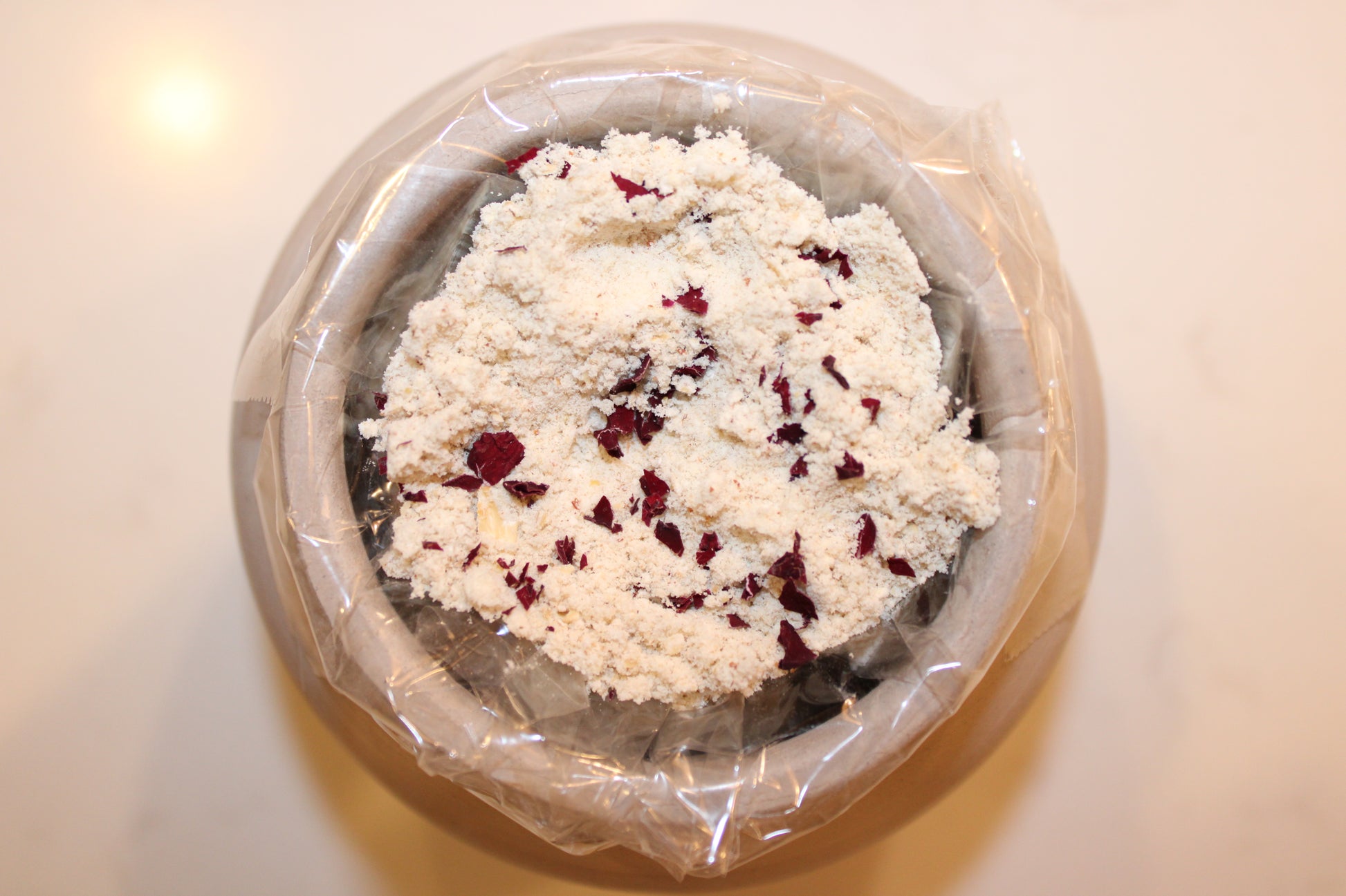 Organic Ground Oats, Organic Ground Almonds, Powdered Milk, Rose Petals